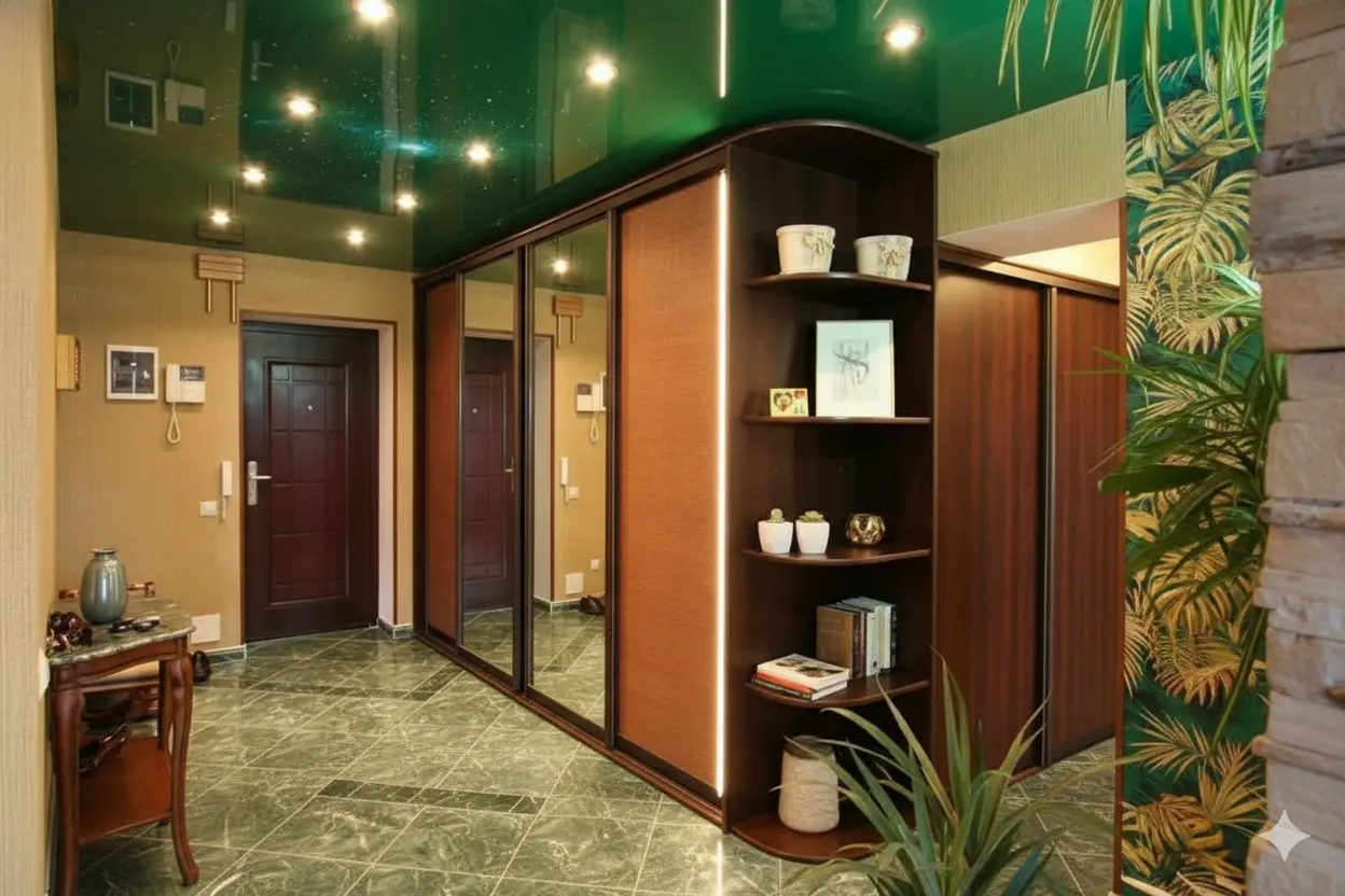 Глянцеві стелі універсальні, але найефектніше вони працюють там, де потрібно додати світла або візуально збільшити простір — наприклад, у ванних кімнатах, кухнях або коридорах. У сучасних залах вони створюють стильний акцент. У спальнях їх використовують рідше через можливі відблиски, але це питання особистих уподобань.
