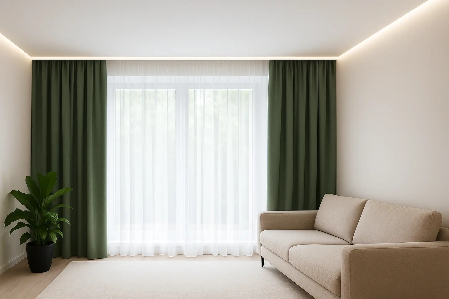 Елегантне рішення для кріплення штор. Створюємо ідеальну нішу для штор в натяжній стелі. Професійний монтаж прихованих карнизів з гарантією 15 років. Дізнайтесь вашу ціну просто зараз.